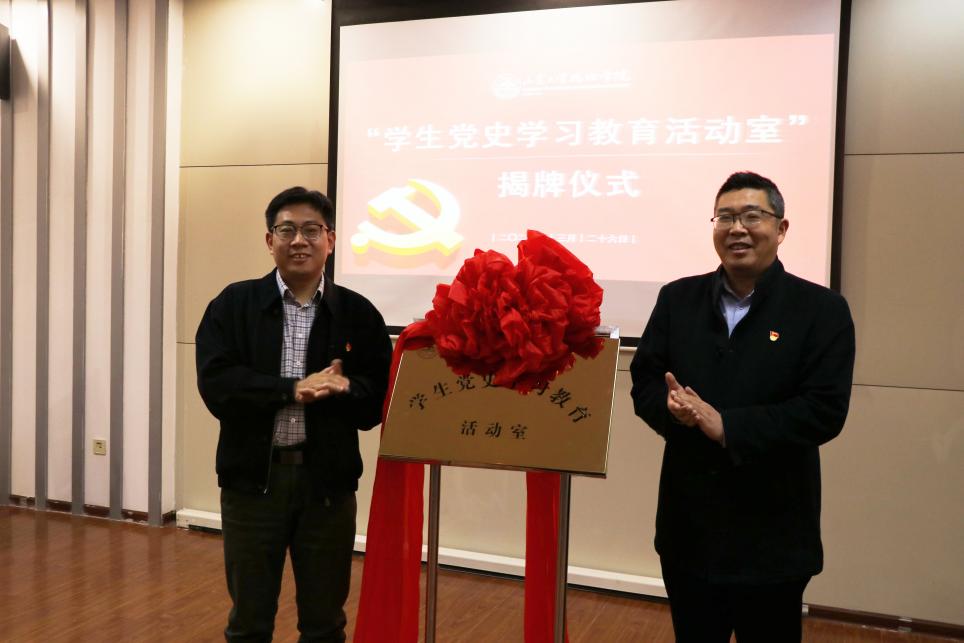 3月26日下午,物理学院“学生党史学习教育室”揭牌仪式在离子束楼报告厅举行。党委学生工作部、武装部部长周作福、物理学院党委书记郁鹏、学院正处级辅导员张倩、学院党委副书记辛莹出席活动。部分师生代表参加会议,学院团委书记曹晓习主持会议。