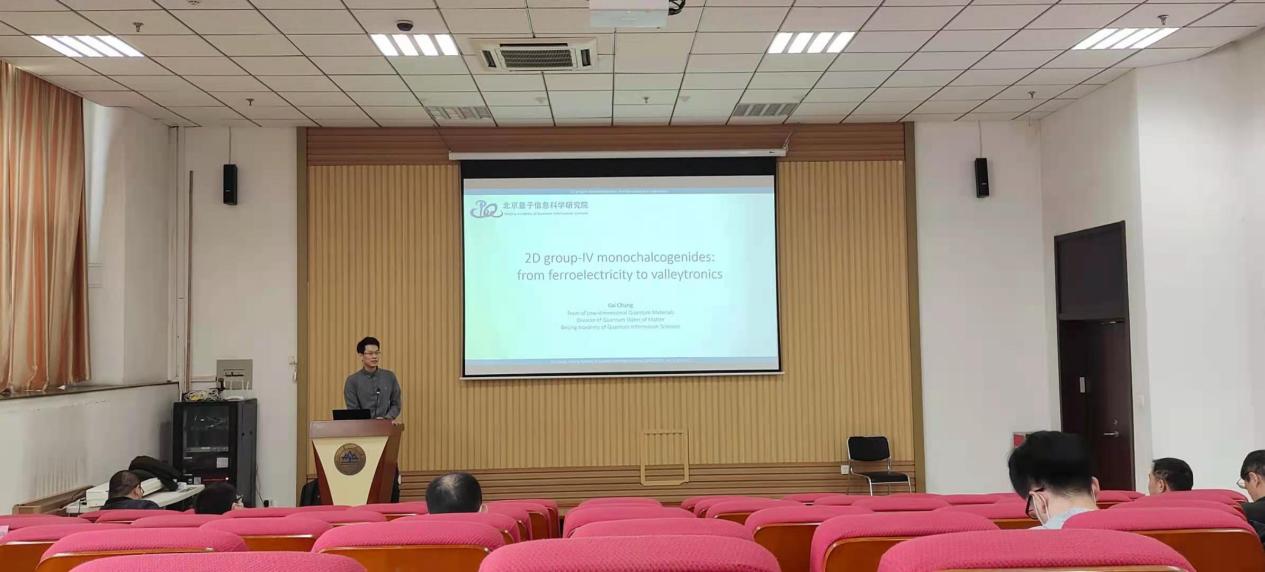 4月15日下午,由山东大学研究生院、党委研究生工作部主办,物理学院承办的第30期(总第1019期)“稷下风”研究生学术讲坛于中心校区知新楼C座702量子报告厅举行。本次讲坛由物理学院李洋洋教授主持,北京量子信息科学研究院研究员常凯做客讲坛,为同学们带来题为“2D monochalcogenides: from ferroelectricity to valleytronics”的学术讲座。