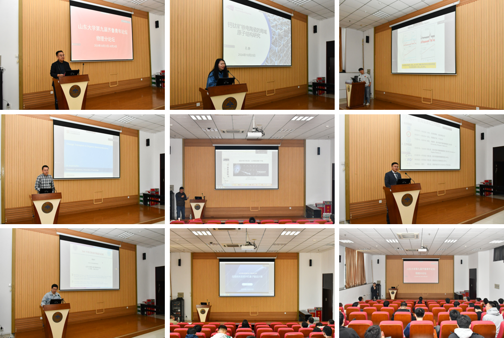 2024年10月23日-24日,山东大学第九届齐鲁青年论坛物理分论坛通过线上线下相结合的形式在山东大学物理学院量子报告厅成功举办。本次论坛搭建了我院与海内外青年学者沟通交流的平台,会议邀请了11位海内外优秀青年学者主讲,加强了学院对外学术交流,让更多青年学者了解山东大学和山大物理。