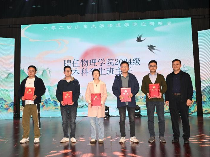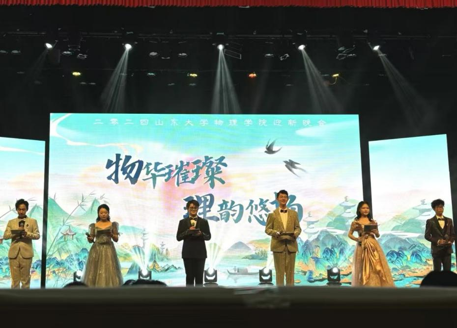 近日,物理学院2024年“物华璀璨,理韵悠扬”迎新晚会在中心校区音乐厅举行。党委学生工作部武装部副部长徐孝刚,山东建筑大学原理学院院长、山东大学物理80级校友许福运,物理学院院长司宗国、党委副书记辛莹以及来自学院各年级的辅导员、班主任,全院本硕博300余名学生参加晚会。