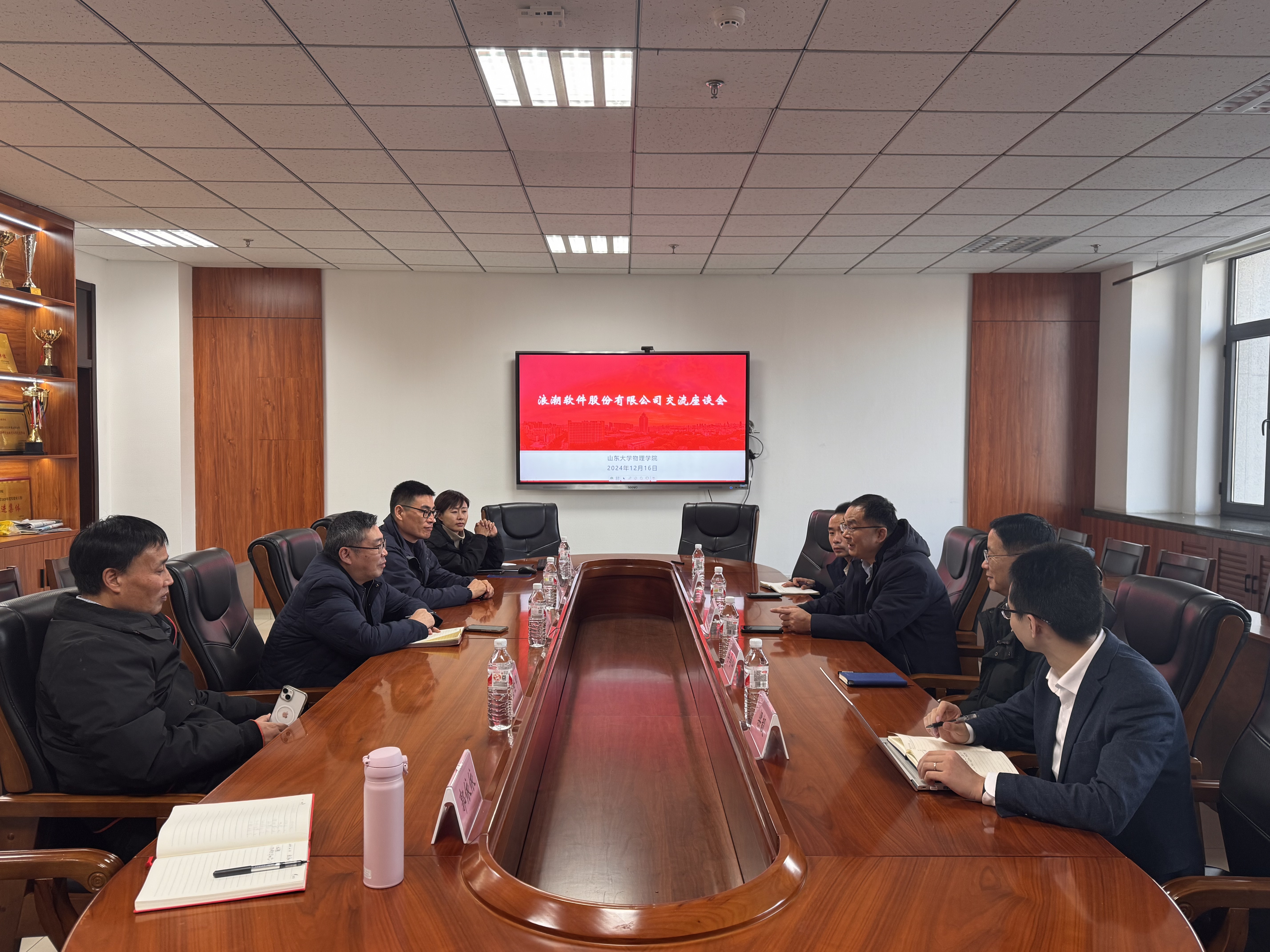 浪潮软件股份有限公司平台技术研发部方案经理李笃山,浪潮软件股份有限公司市场业务部副部长辛廷亮,浪潮软件股份有限公司人力资源部部长助理梁毅,物理学院副院长柏利慧,物理学院教授颜世申及物理学院机关相关工作负责人员参加交流座谈。
