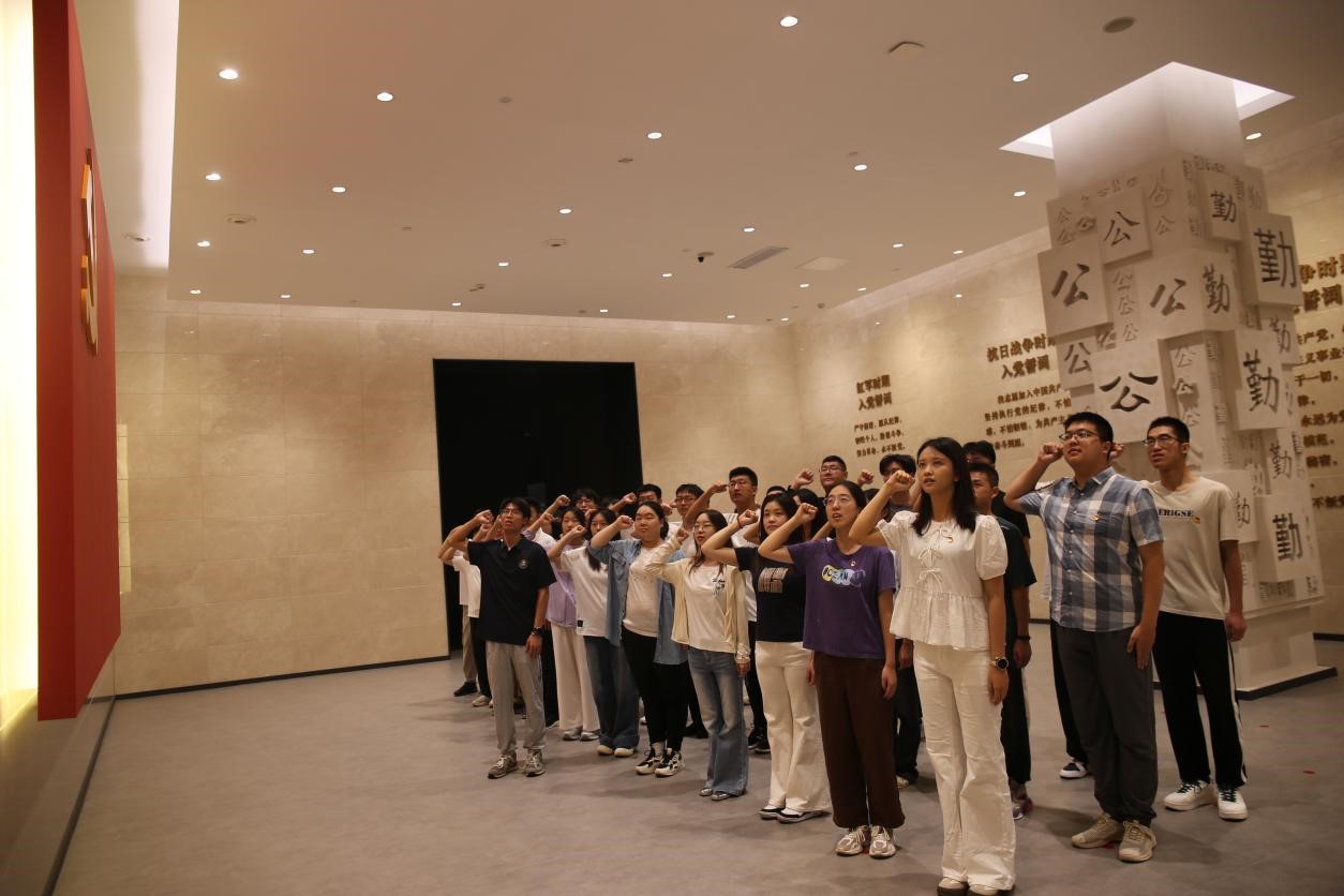 在宣誓厅,鲜红党旗悬挂正中,氛围庄严肃穆。支部书记李明远带领全体党员高举右拳庄严宣誓,重温入党誓词。誓言回荡,仿佛一次青春的校准:既回望“为什么出发”,也标定“该怎样抵达”。随后,全体成员有序进入报告厅,观看《失守的青春-年轻干部严重违纪违法案件警示录》,片中披露多起年轻干部背离初心、贪腐堕落的典型案例,深刻剖析其由“好苗子”沦为“案中人”的蜕变轨迹。真实案情与忏悔画面直击人心,为青年党员敲响警钟。大家纷纷表示,要以案为鉴、警钟长鸣,常怀敬畏之心,严守纪律底线,努力成长为有理想、敢担当、能吃苦、肯奋斗的新时代好青年。