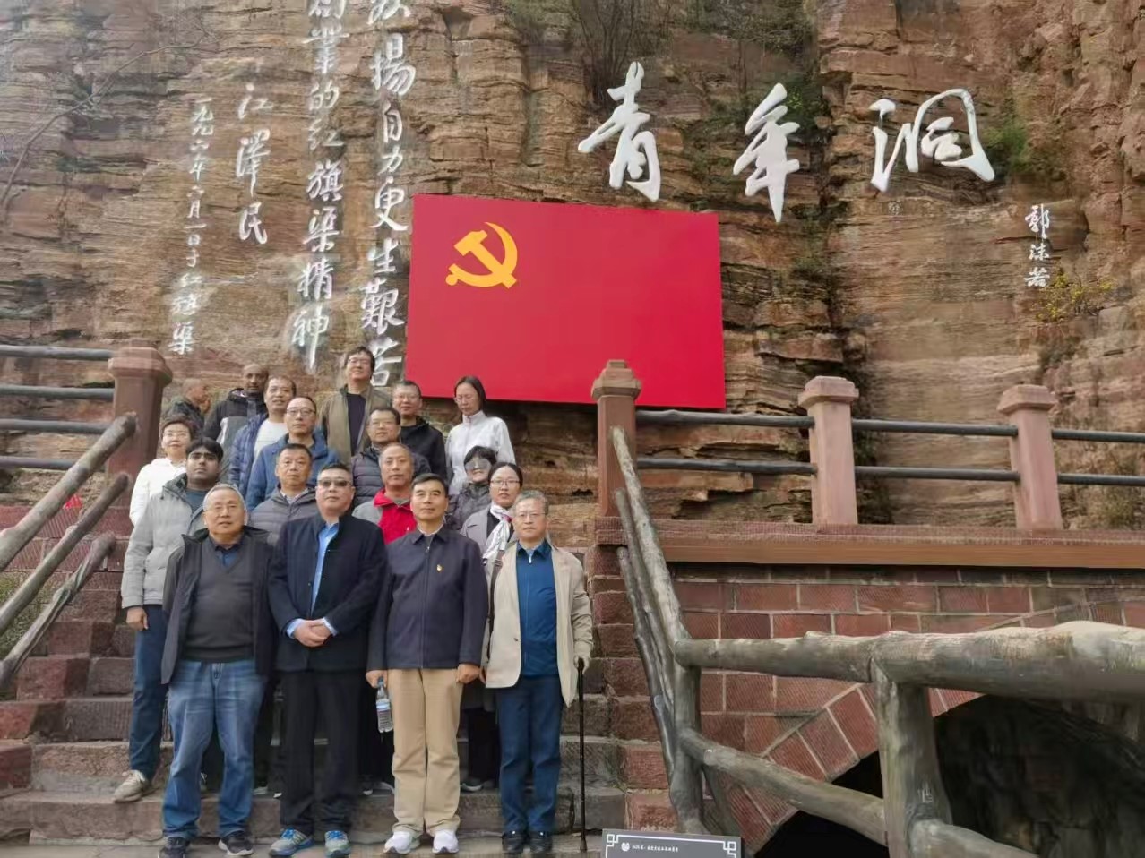 在红旗渠纪念馆、“青年洞”进行实地学习时,沿渠徒步体验成为特色互动环节。大家沿着蜿蜒的红旗渠畔行走,身旁是壁立千仞的悬崖峭壁,脚下是当年建设者用双手凿出的渠道,亲身感受“人工天河”的险峻与壮阔。途中,大家结合实景交流感悟,看着静静流淌的渠水,深刻体会到当年林县党员群众“劈开太行山、引来漳河水”的艰辛——没有先进设备,就靠一锤一钎凿山开石;没有充足物资,就凭双肩挑运建材。