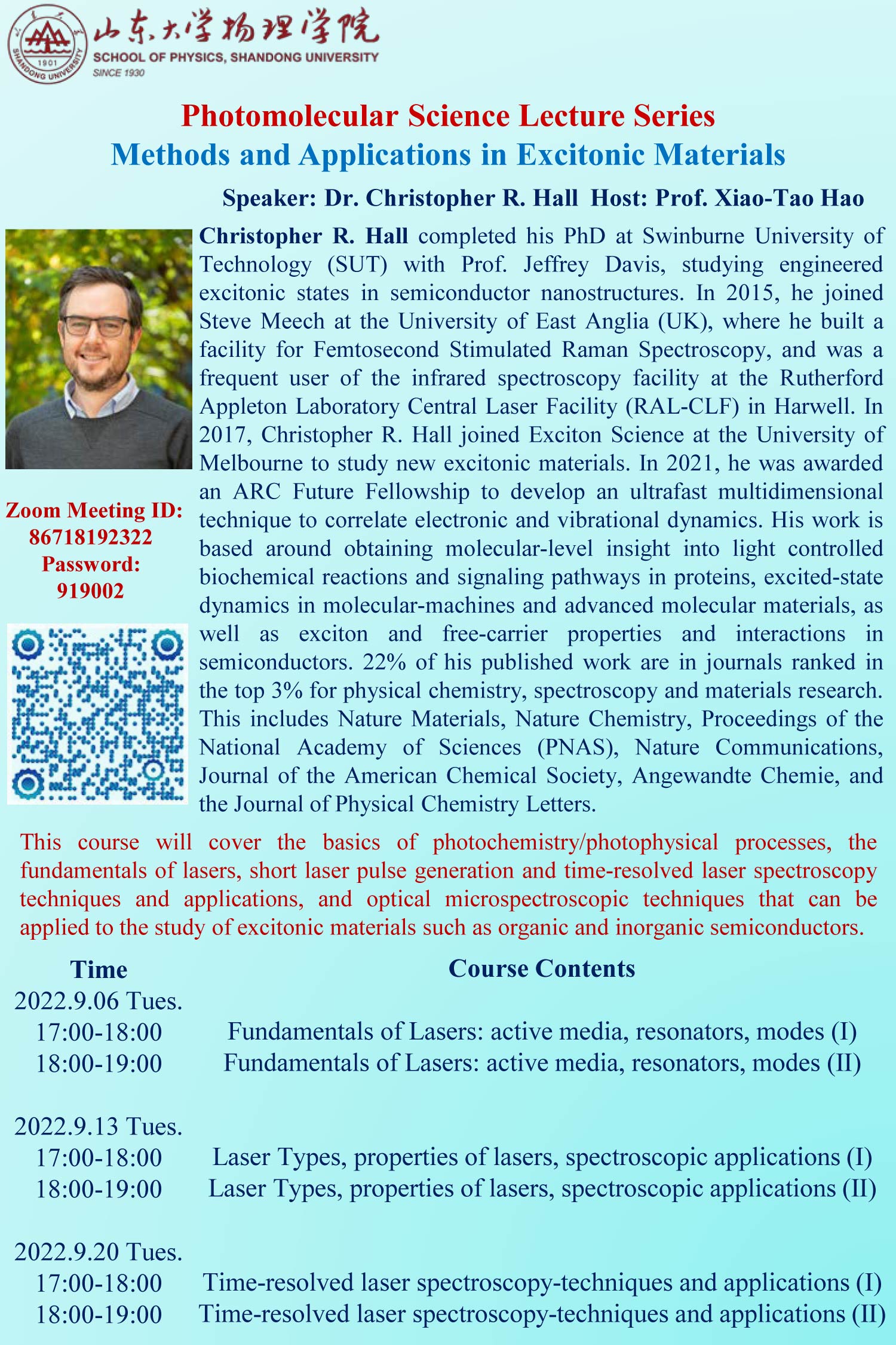 Photomolecular Science Lecture Series: Methods and Application in Excitonic Materials